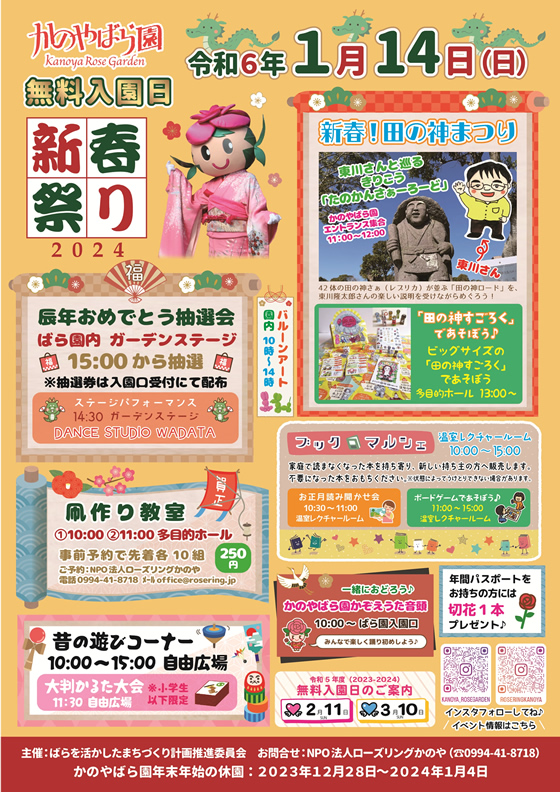 > かのやばら園 無料入園日 新春祭りのご案内