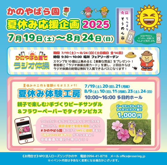 かのやばら園 夏休み応援企画2025のご案内