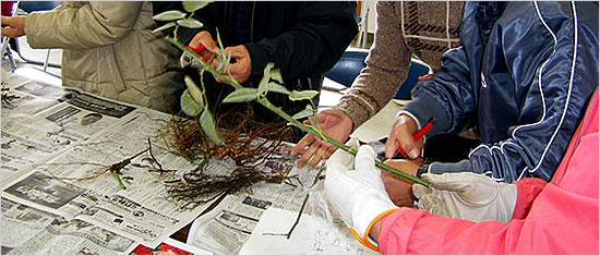 月1回の定例会では、バラ栽培はもちろん、山野草やガーデニングのテクニックを教え合って楽しんで活動していま した。 他にも、ばら祭りでのボランティア活動(園内ガイド・バラ苗相談員)や研修旅行、栽培教室サポート員として、活躍してくださいました。 |